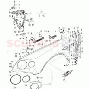 펜더는 차량의 앞뒤 바퀴 위에 장착되며 차체 구조에 통합되어 있습니다. 앞 펜더는 앞 범퍼에서 도어까지 이어지며, 뒷 펜더는 뒷 범퍼에서 뒷문이나 쿼터 패널까지 이어집니다. 펜더는 도로의 이물질, 날씨, 제설제에 노출되어 긁힘, 찌그러짐, 녹이 발생하기 쉽습니다. 유지 관리를 위해 휠 하우스를 세척하고, 보호 왁스를 바르며, 칩이나 균열 여부를 확인해야 합니다. 금속 펜더는 녹 방지가 필요하며, 플라스틱이나 유리섬유 재질은 변형이나 균열 여부를 점검해야 합니다.