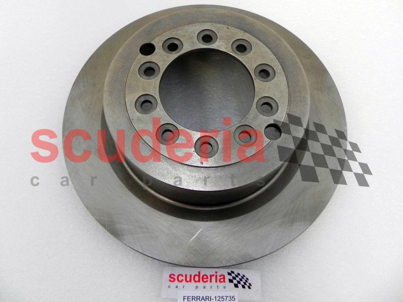 페라리 부품번호 125735는 페라리 288 GTO-TR용 뒷브레이크 디스크이다. 브레이크 디스크는 브레이크 로터라고도 합니다. 휠 허브에 부착되어 휠과 함께 회전합니다. 브레이크 페달을 밟으면 브레이크 캘리퍼가 브레이크 패드를 브레이크 디스크에 압착하여 휠 속도가 느려집니다.